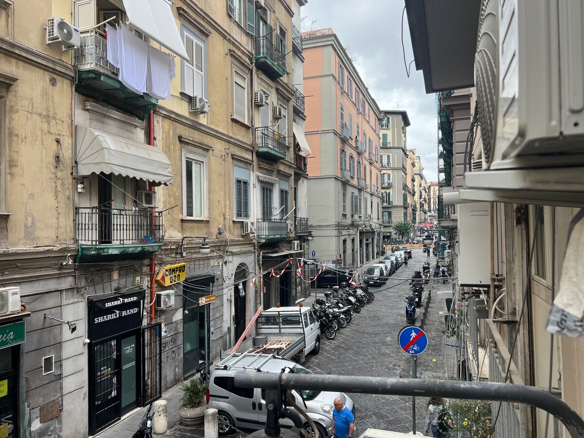 那不勒斯市中心新翻修的公寓。 配備完整廚房、微波爐、水壺、更堅固、起動器、洗衣機。 一間臥室、兩張牀(包括1張單人沙發牀)、1間配有淋浴間的浴室。 位於那不勒斯市中心,距離那不勒斯港口和博物館區域200米。 距離布維奧廣場地鐵站100米。