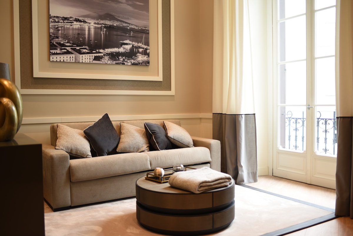 豪華公寓:經典優雅與現代的結合,剛剛翻新,配有按摩浴池和90平方米的私人屋頂,您可以欣賞維蘇威火山。 坐落在舊城中心三樓的歷史建築中,沒有電梯,步行即可抵達所有地方。 免費 WiFi、PrimeVideo、Nespresso 和行李寄存 景點 • 2分鐘即可抵達大教堂 •那不勒斯地下4分鐘 • 6分鐘地鐵L1和L2 • 5分鐘火車站 •距離港口10分鐘