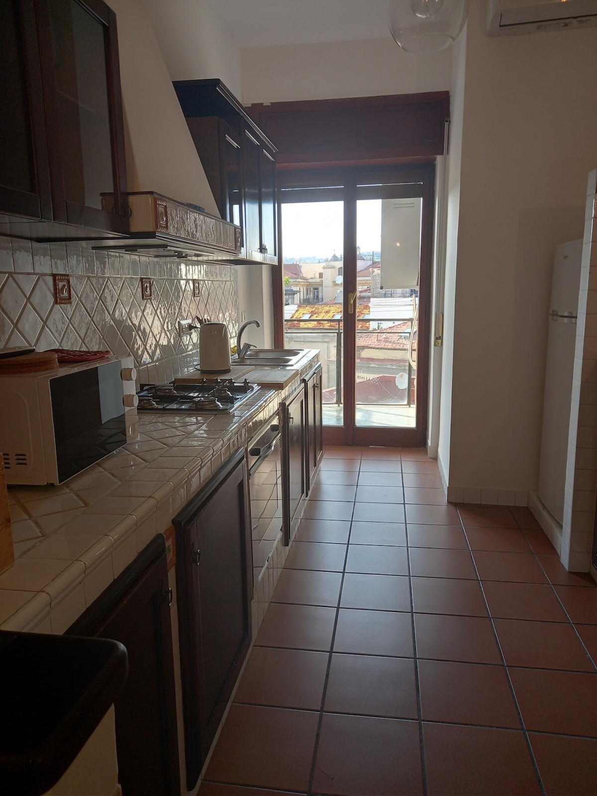 Spazia con lo sguardo sui tetti, sulle cupole di Napoli e sul Vesuvio dalle finestre di questo intimo appartamento con travi a vista e parete in mattoni, dove gli spazi interni, arredati in stile moderno, sono stati studiati per il massimo comfort. IL PALAZZO E' DOTATO DI ASCENSORE. Il terrazzo, condiviso con altri appartamenti, ti darà modo di riposarti dopo una giornata trascorsa alla scoperta della città.