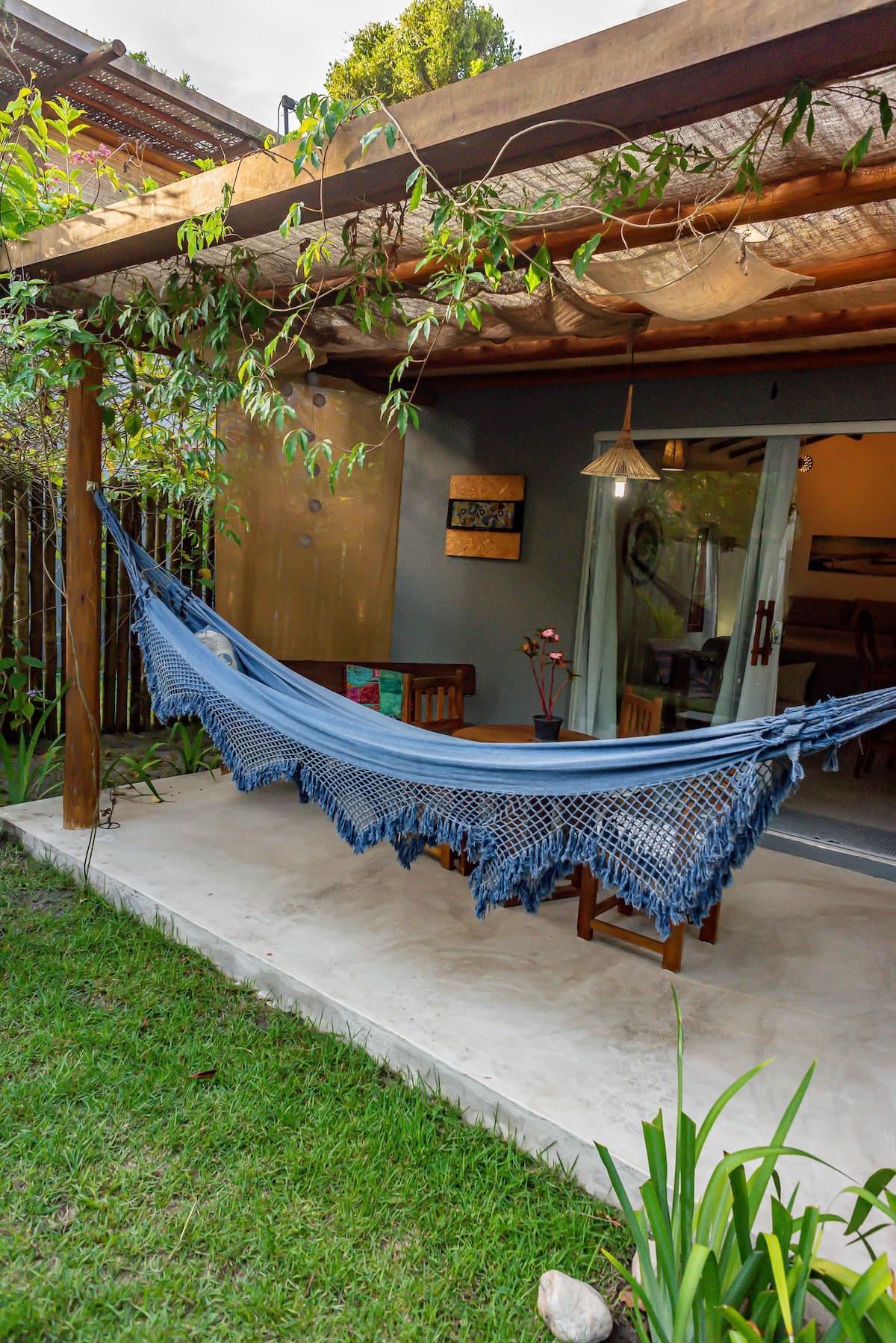 房子巧妙運用精心挑選的元素,營造出一個兼具鄉村風格和波希米亞時尚感的度假勝地。 穿過木門進入後,你會發現自己身處一個開放、通風的空間,四周都是植物和花園。 靠近 Trancoso 的歷史中心 Quadrado,那裡有著名的 São João Batista 教堂、商店和餐廳。