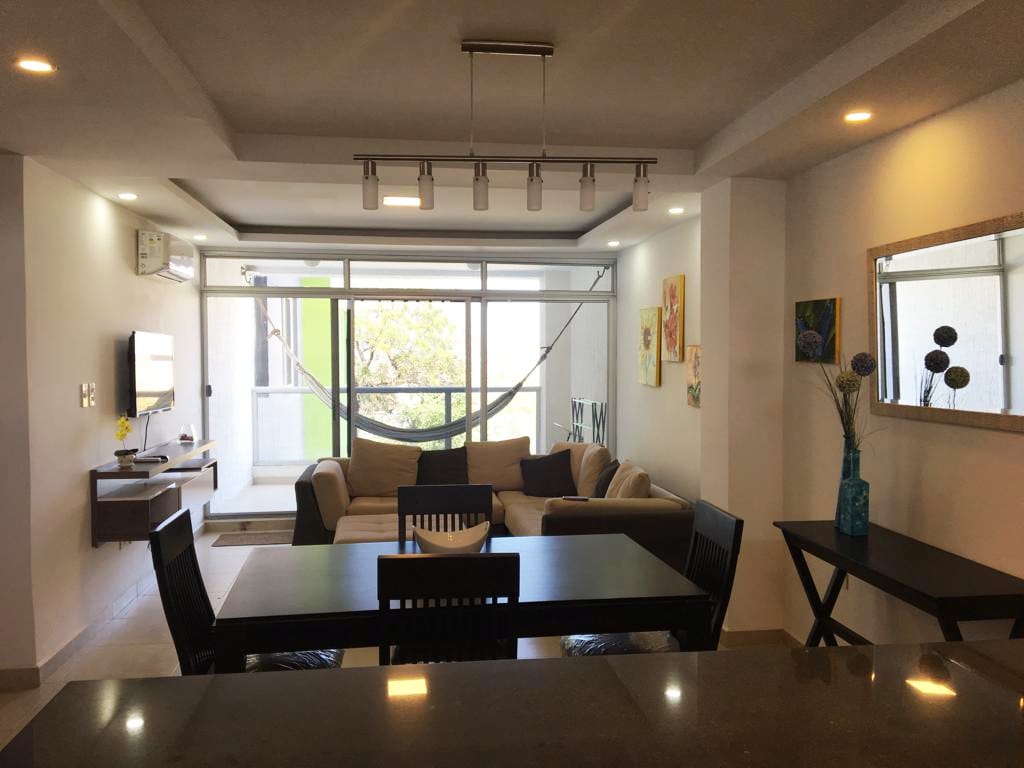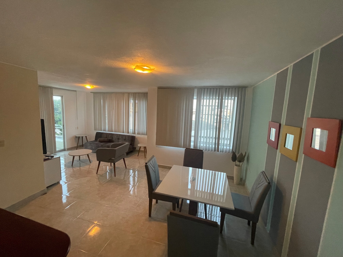 享受現代化、寬敞舒適的公寓,位於城市的戰略和主要區域,距離海灘和商場5分鐘,距離銀行、藥店、超市和餐廳幾公尺。來這座美麗的城市玩吧!!