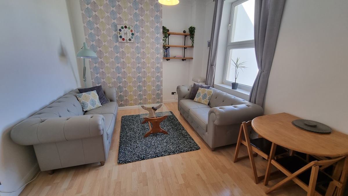 寬敞、明亮、通風、頂樓空間,設備精良、舒適。 公寓的臥室配有加大雙人床,休息室配有舒適的雙人沙發床,可供4人舒適入住。我對3位或以上房客收取額外費用。當2位房客入住時,我也會收取10英鎊的費用,並需要沙發床。 有 WiFi。 該公寓位於一個熱門和時尚的區域,靠近Albert Rd。步行2分鐘即可抵達國王劇院( The Kings Theatre ) ,步行15分鐘即可抵達海濱。