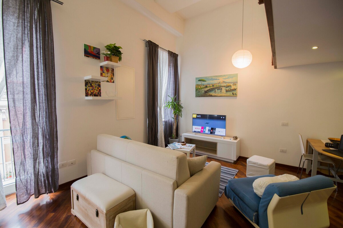 Experience the soul of Naples in this charming, sun-filled home nestled in a picturesque traditional alley. Located steps away from the elite Chiaia district, you’ll be surrounded by luxury boutiques (Gucci, Prada, Hermès) and the city’s finest dining and nightlife. The perfect blend of authentic Neapolitan vibe and high-end elegance.