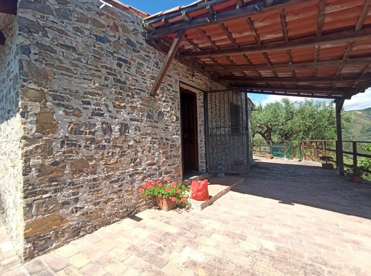 Graziosissima casetta indipendente con vista mare interamente rivestita con pietra locale. L’unita' di circa 25 metri quadri comprende una camera con letto matrimoniale, bagno e piccola cucina funzionale e luminosa, dotata di piastra a induzione, frigo, bollitore, microonde, tostapane, tavolino e due sedie. L’adiacente area esterna annovera un pergolato da cui si puo' godere di un magnifico panorama. Parcheggio privato all’interno della proprieta' e WiFi gratuito.