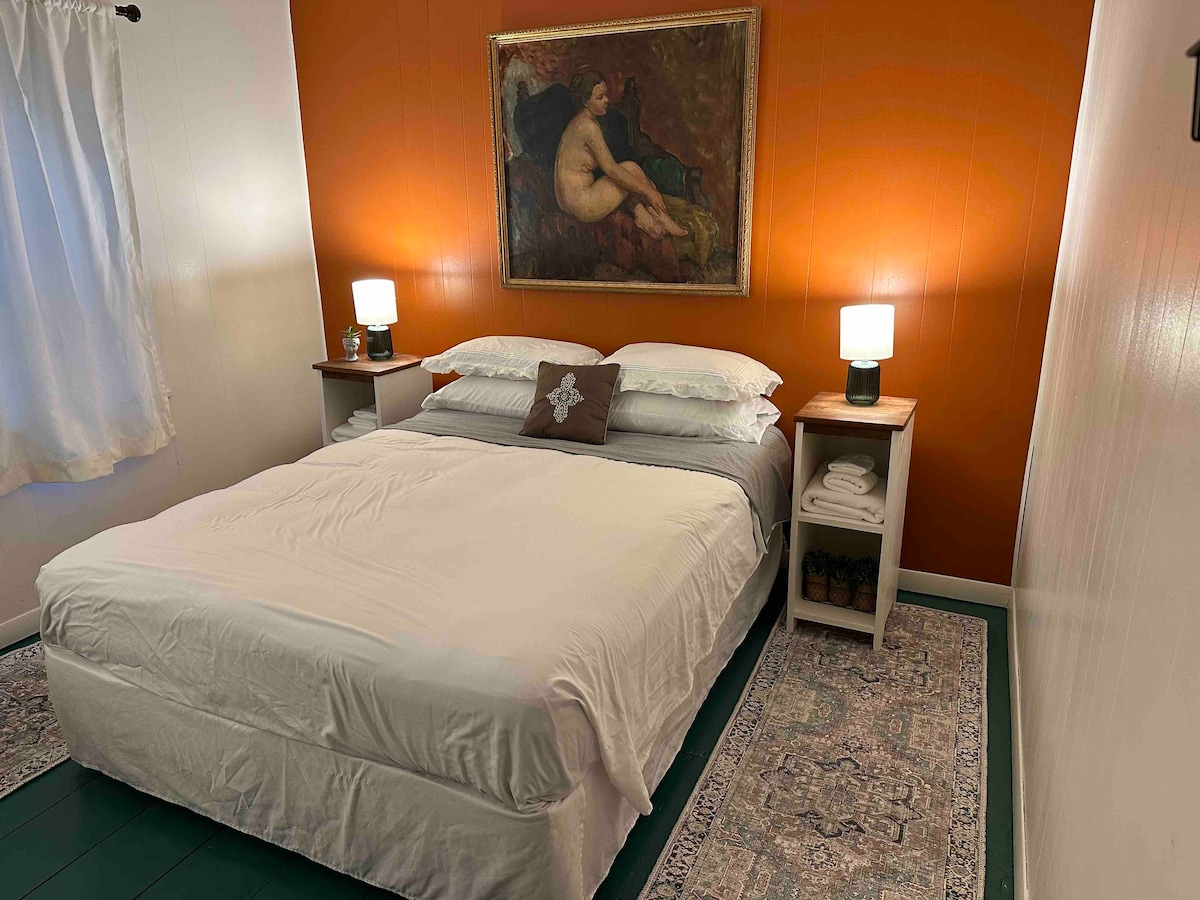 這間兩間臥室、一間浴室,當您穿過前門時,會讓您有賓至如歸的感覺。 最近進行了翻新,整個房源均配備全新電器和家具。 位於安靜的小巷上,步行幾分鐘即可抵達市中心,透過這個舒適的空間,您將獲得兩全其美的體驗! 我們配備了您的所有日常必需品,盡可能讓您的住宿舒適方便。*兩層樓的房源。 必須爬樓梯才能進入臥室*