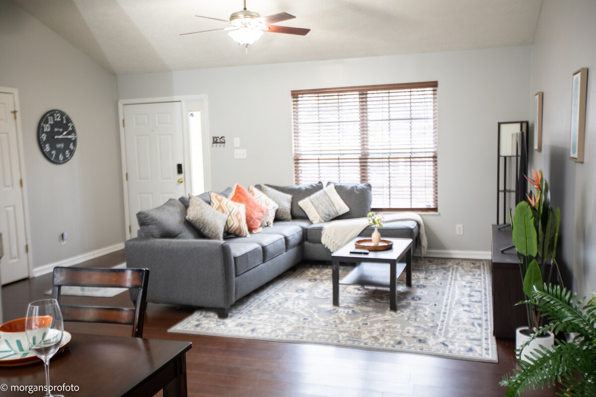 帶著全家人一起入住這間可愛的房源,享受現代化的更新。享受在前門廊搖滾或在後甲板上一起放鬆。全套廚房,配有新型電器、獨立洗房、主臥室、套房浴室、可供七人入住的寬敞睡眠空間(或八人入住,包括「遊戲」)。 開車約15分鐘即可抵達諾克斯維爾市中心,開車約1小時即可抵達煙霧山,非常適合家庭度假或UT Big Orange活動和遊戲!我們很樂意在我們位於田納西州的舒適房源接待您!
