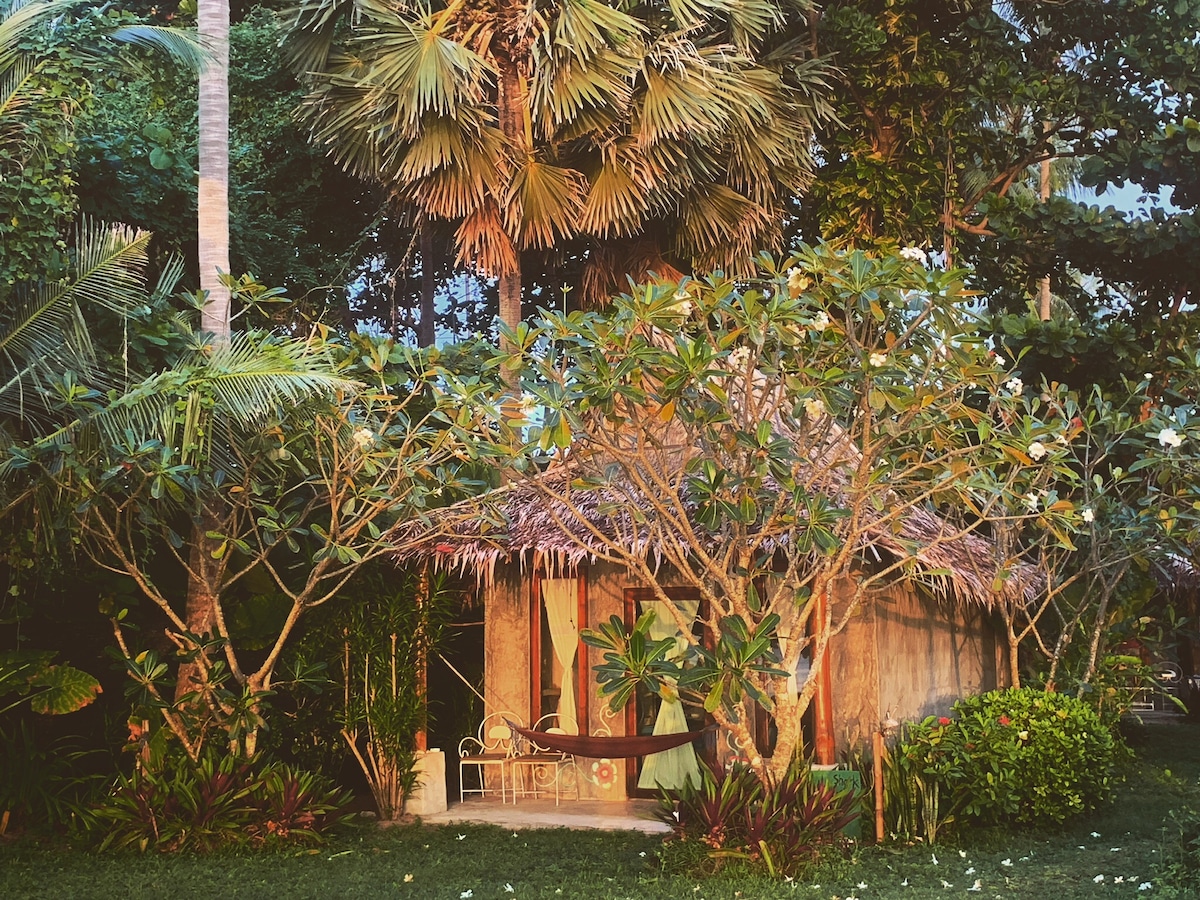 欢迎来到兰达岛的海中之树度假村 - 一个安静、田园诗般的棕榈树综合体,位于海边。享受潮汐、日出,在宁静的大自然中放松身心。海滩非常适合散步和探索 - 退潮时您可以看到岩石、小型海洋生物和自然形态。花园在晚上灯火通明,营造出舒适的氛围。我的每间简易别墅均设有带淋浴的私人浴室和空调。
