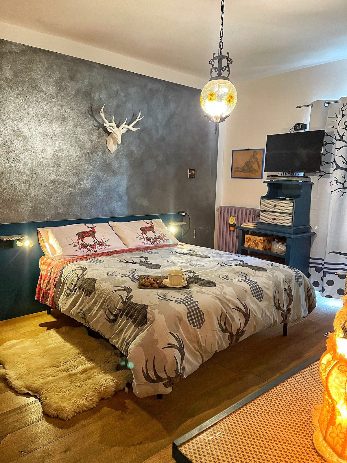 Vivi l'esperienza della liberta in questo piccolo scrigno in stile marinaro. Dotato di un comodo letto matrimoniale, una zona lavabo attezzata con microonde, bollitore e frigorifero e una piastra elettrica. Un ampio divanetto trasformabile. In questa stanza a pochi metri dal lago puoi godere di una spettacolare vista dal balcone, ampio e vivibile. Smart tv La colazione a buffet è un nostro omaggio (no prodotti cotti). Sarà fornita al ristorante, solo in caso di altri ospiti.