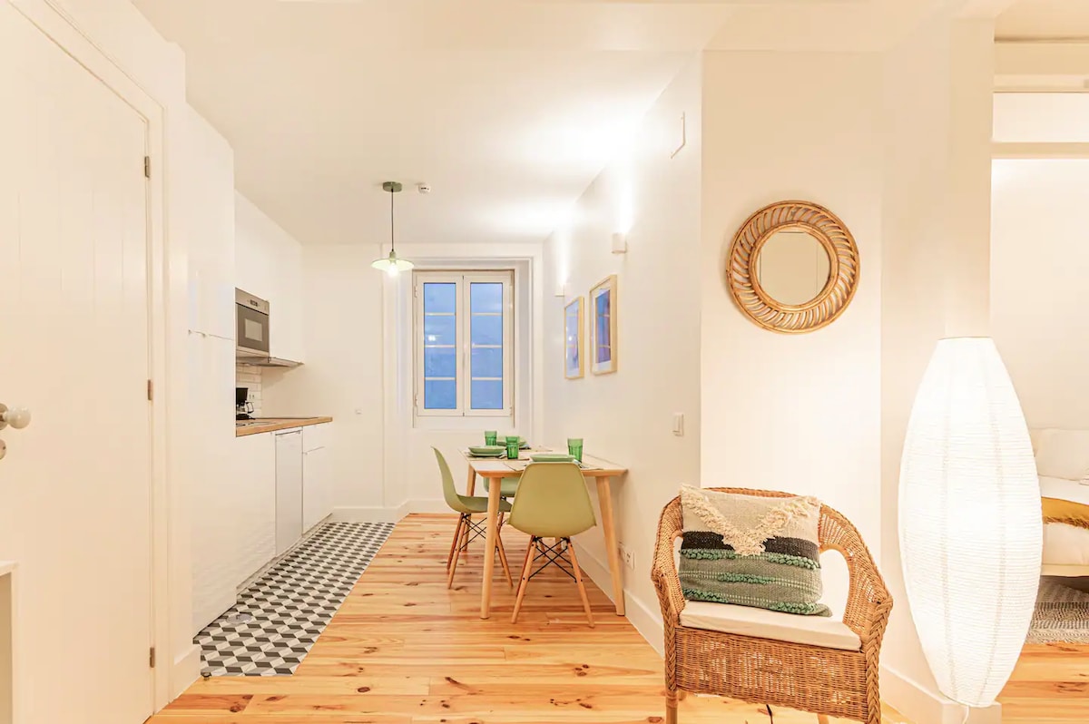 里斯本市中心的和諧與魅力。現代、迷人、乾淨舒適的 1 間臥室公寓,位於有電梯和 WIFI 的大樓中。靠近公共交通工具和各種商業和服務,包括超市。步行幾分鐘即可抵達市內幾個旅遊景點,以及歷史悠久的28號電車站、Chiado和塔霍河。無論是度假還是工作,都能在里斯本享受難忘住宿體驗所需的一切設備。非常適合 1 或 2 人和家庭入住