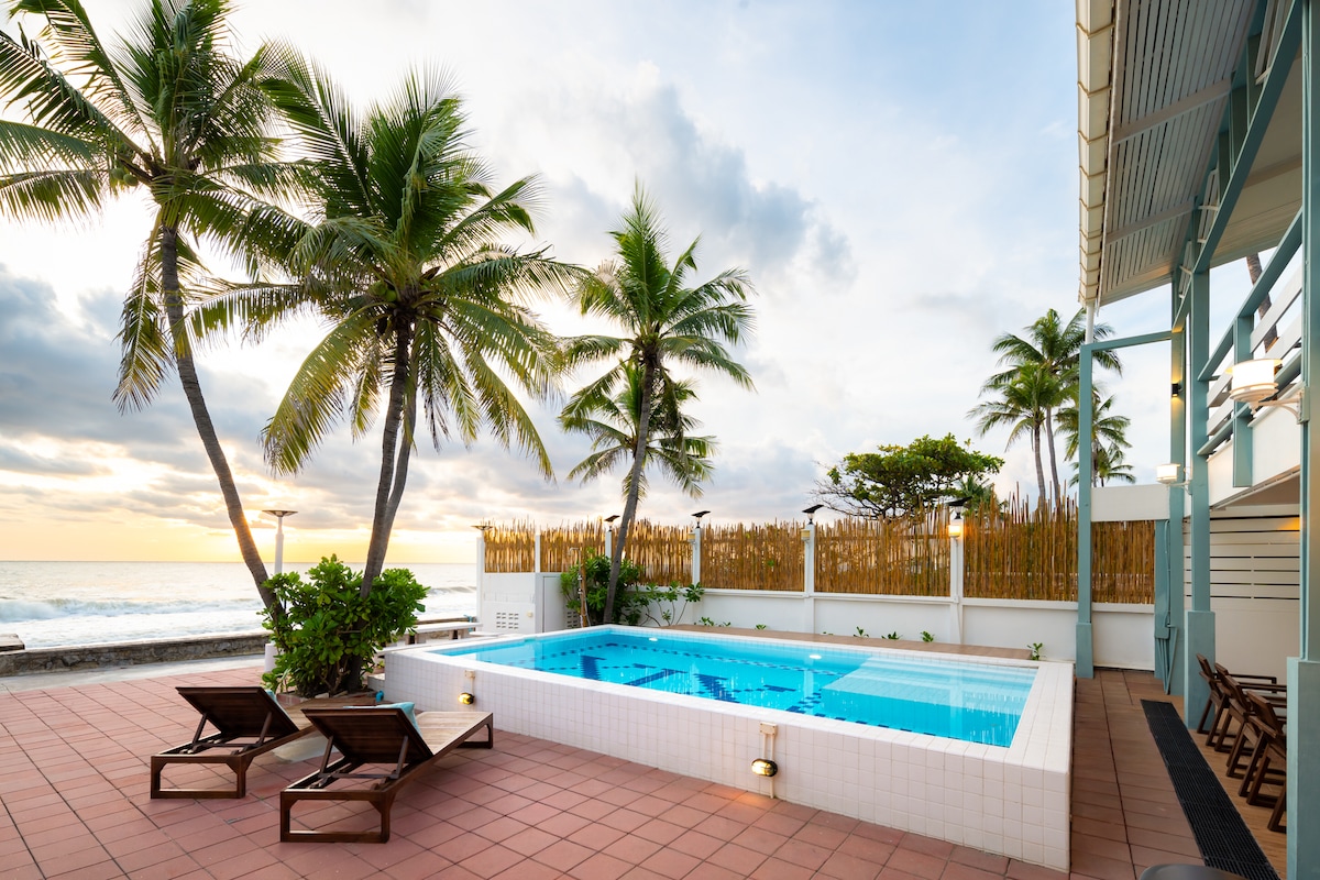 🌊 30平方公尺,最多可容納4位房客,可直達海濱,非常靠近夜市! ✔ 海景陽台 ✔共用廚房和2個泳池 ✔休息室/烤肉架+必需品 ✔ 戶外座位 | 日光浴床 | 小屋 ✔特大雙人床+毛巾,有冷氣 ✔ 洗衣機+烘乾機 ✔提供海灘裝備 ✔快速WiFi和智慧電視 附近: 🌙皇后夜市:0 分鐘 🪁 市集村: 10分鐘 🌊海濱咖啡廳和餐廳:5分鐘 🏰 皇宮:5 分鐘 🌌 Cicada夜市: 15–20分鐘 便利: 🛒 7/11:3分鐘 🛒 Makro:7分鐘 👉 心願單,然後點選 ❤️