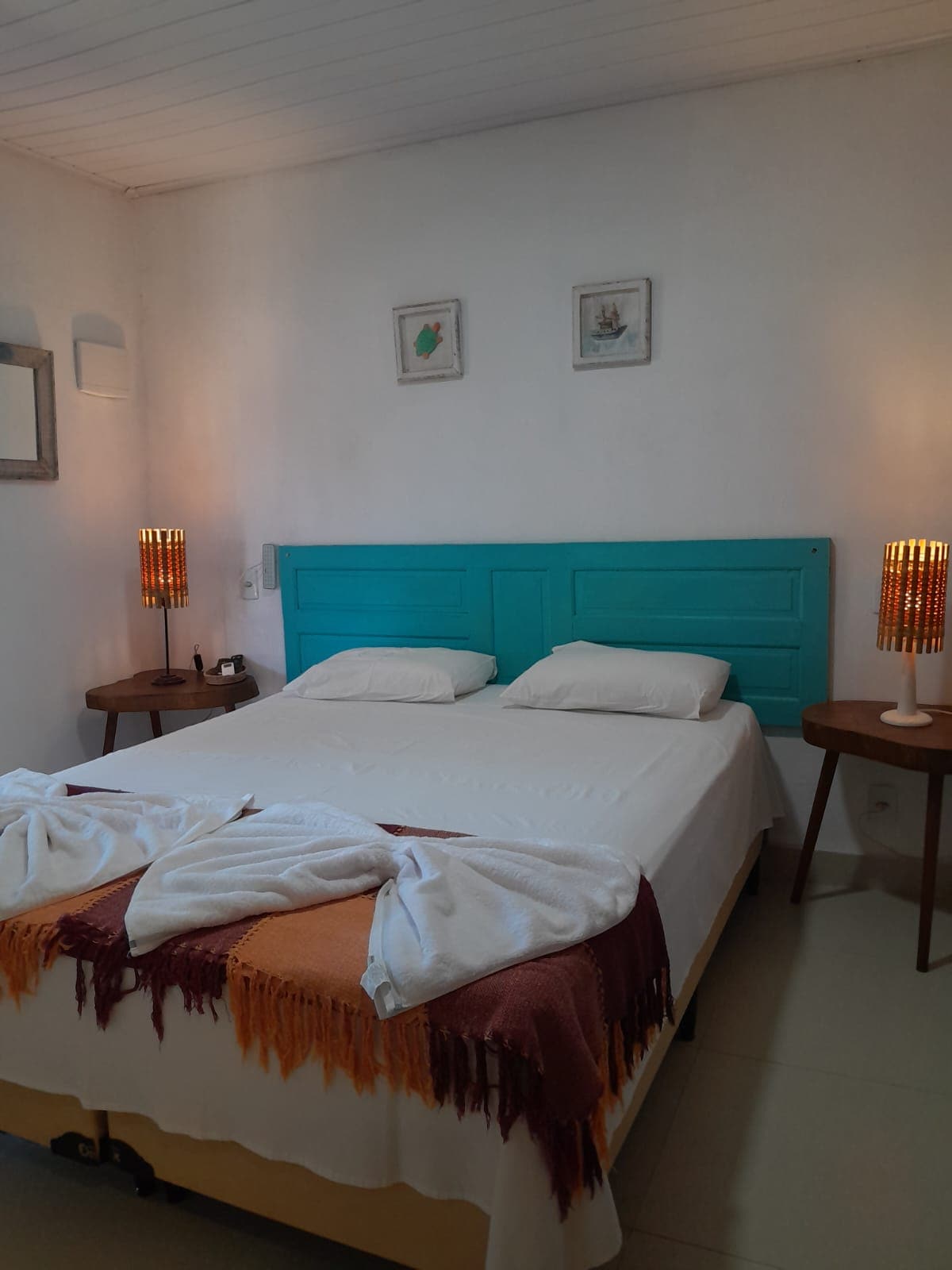 我們迷人的 YELLOW SUITE 提供 1 張雙人床和 1 張單人床,可舒適地容納 1 至 3 位尋找簡單住宿的房客。 空調系統包括空調和吊扇。 我們不提供床單/浴巾或額外床位。 距離海灘 200 公尺,提供 24 小時保全服務,是您在大自然中放鬆身心、享受巴伊亞 (Bahia) 溫暖海水的理想住宿地點!