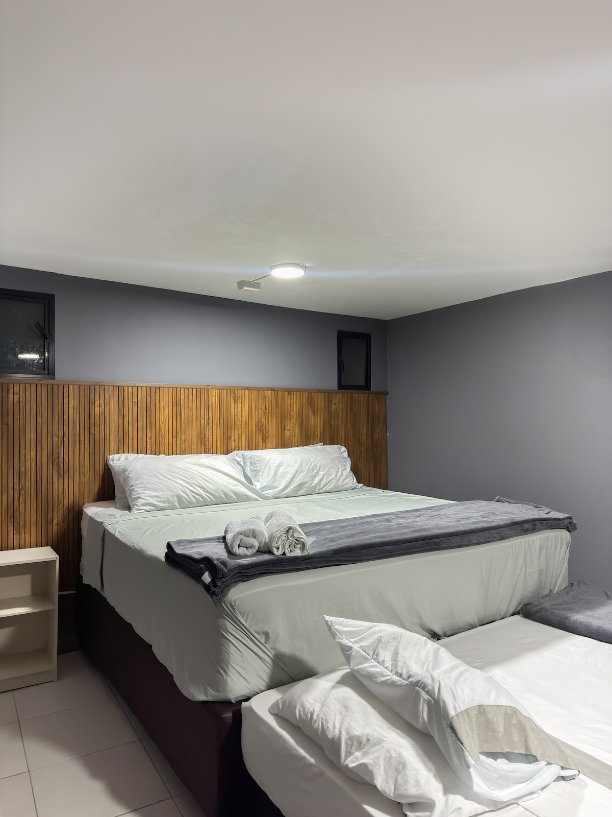 Con un amplio espacio de 23m2, cuenta con una acogedora alcoba, una zona de entretenimento perfecta para relajarte, un balcón para disfrutar de una espléndida vista, cocina equipada, un cómodo escritorio para trabajar; amplio vestier para organizar tus pertenencias, lencería de calidad y un baño completo para tu comodidad. Cuenta con cajilla de seguridad, plancha y mesa para planchado.
