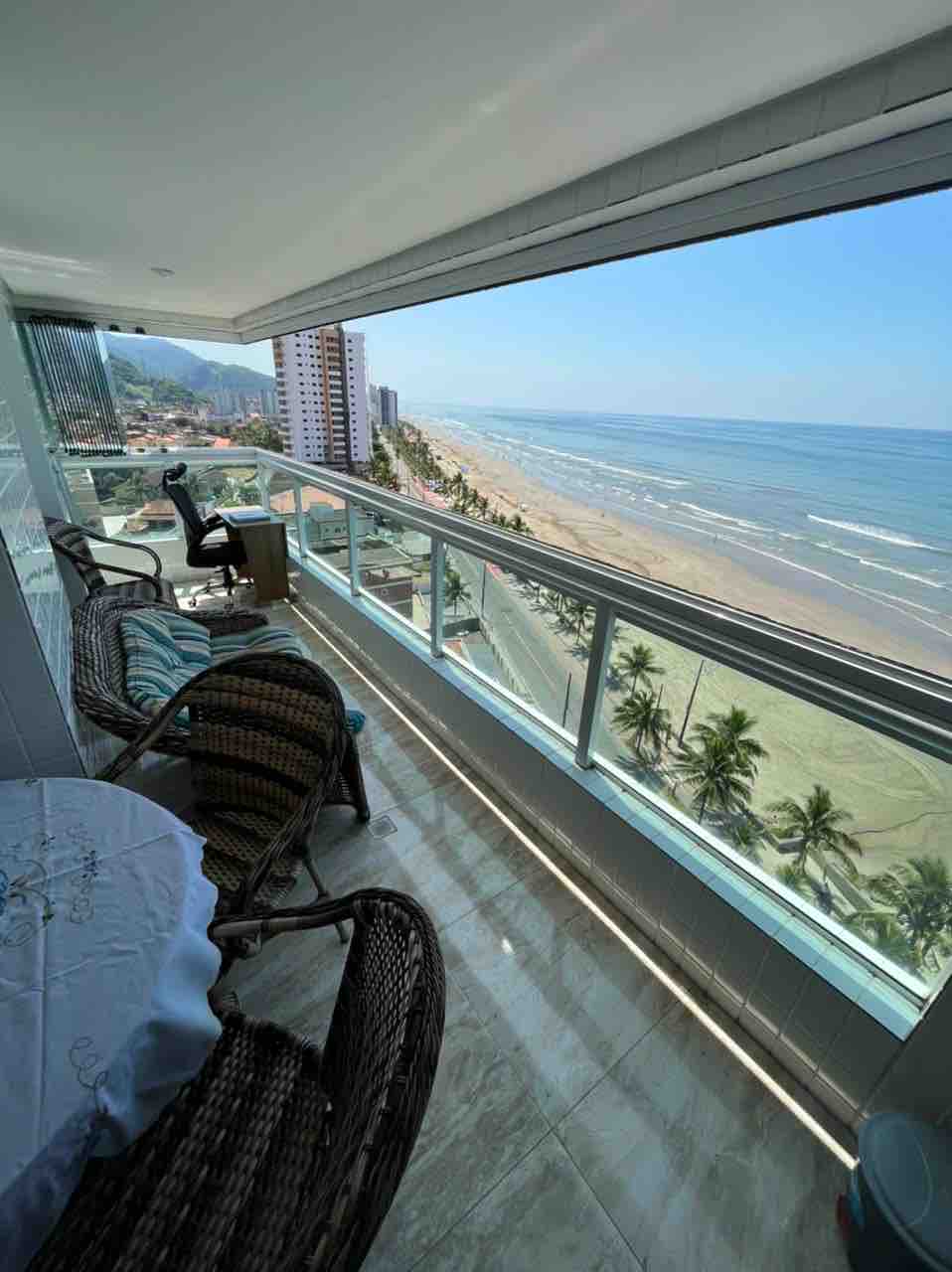 Vista frente mar total maravilhosa em um lindo apartamento decorado frente mar total 2 dorms, (1 suíte). Ar condicionado. O mais belo e encantador nascer no sol, juntamente com o delicioso barulho do mar! Você irá sentir uma paz e ficará encantado com essa experiência! Além disso tenha o privilégio de presenciar o pôr do sol frente mar numa sala de estar e jantar linda com ar condicionado, móveis de altíssima qualidade, tvs smart, cafeteira Nespresso, cozinha completa com fogão indução.