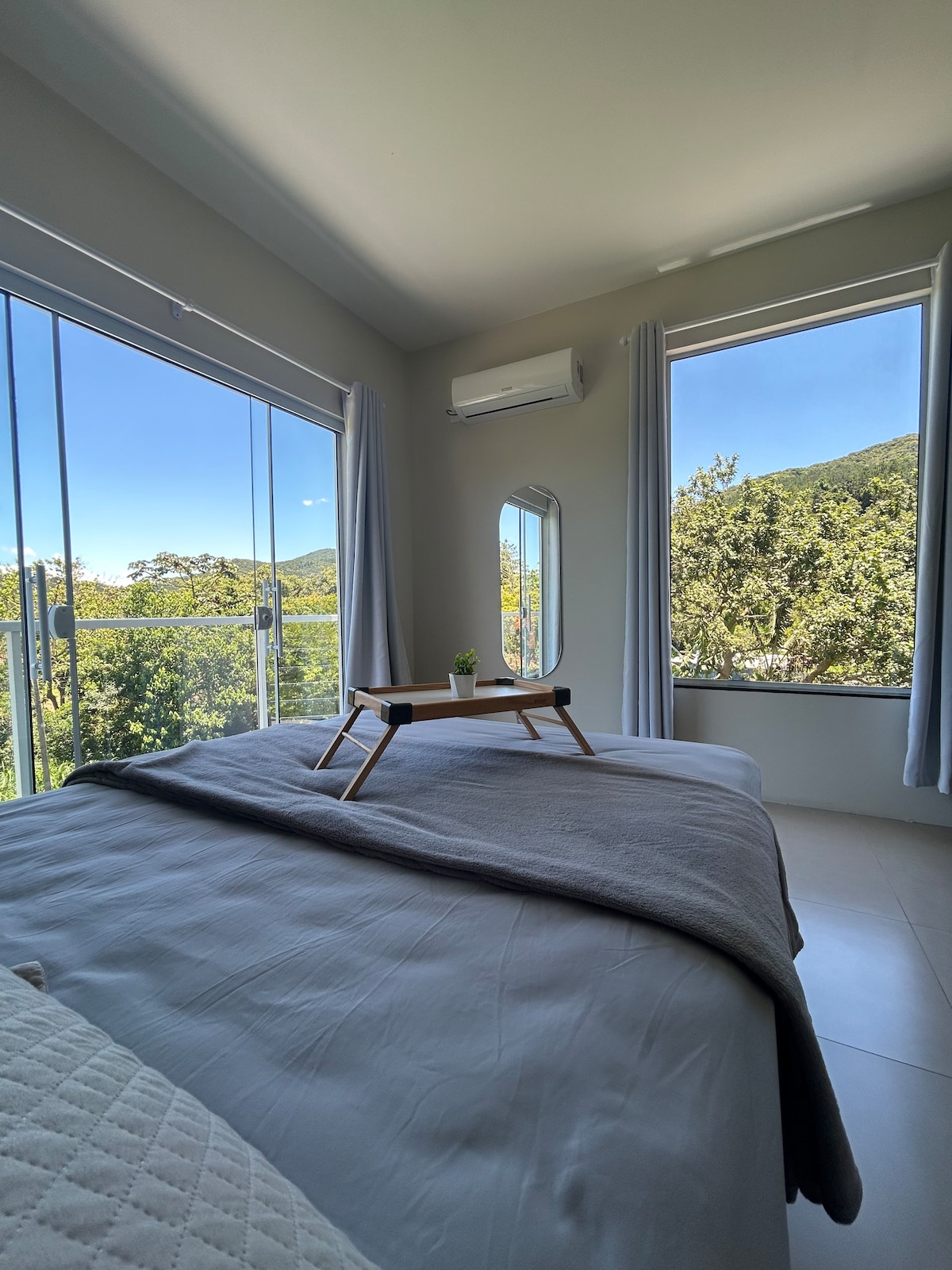 A private Loft whit a breathtaking view of ¨Lagoa da Conceição¨ and the Sea,ideal for couples,located in the ¨Canto dos Araças¨neighborhood,in the middle of Atlantic Forest.A cozy location,both silent and private,only 2,5 Kilometers from the center of Lagoa neighborhood,300mts from Lagoa da Conceição,at the beginning of the trail to Costa da Lagoa.A panoramic,romantic house ideal for couples.5 minutes by car to the Center of Lagoon.15/20 minutes by car to the beach Mole/Joaquina/Galheta/Barra.