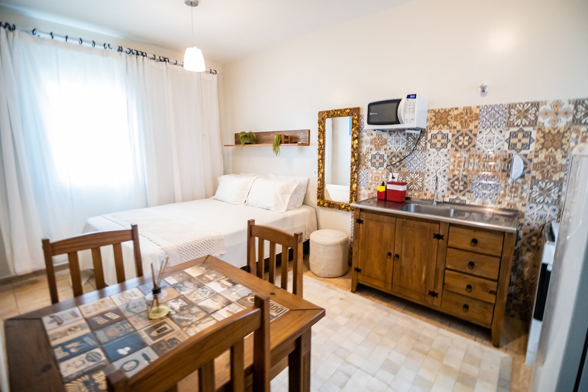 Relaxe neste lugar único e tranquilo. Você terá acesso privativo ao Stúdio anunciado Toda a cobertura é de uso exclusivo dos hóspedes, ninguém irá ao local sem ser convidado. Aqui você encontrará 01 cama box Queen size espaçosa e confortável e Tv Smart com netflix/You tube, para momentos de lazer e descontração! O Ambiente é todo integrado e climatizado com ar condicionado. Cozinha completa equipada com churrasqueira móvel. Desfrute de um Ambiente Aconchegante, Tranquilo, Familiar e Seguro.