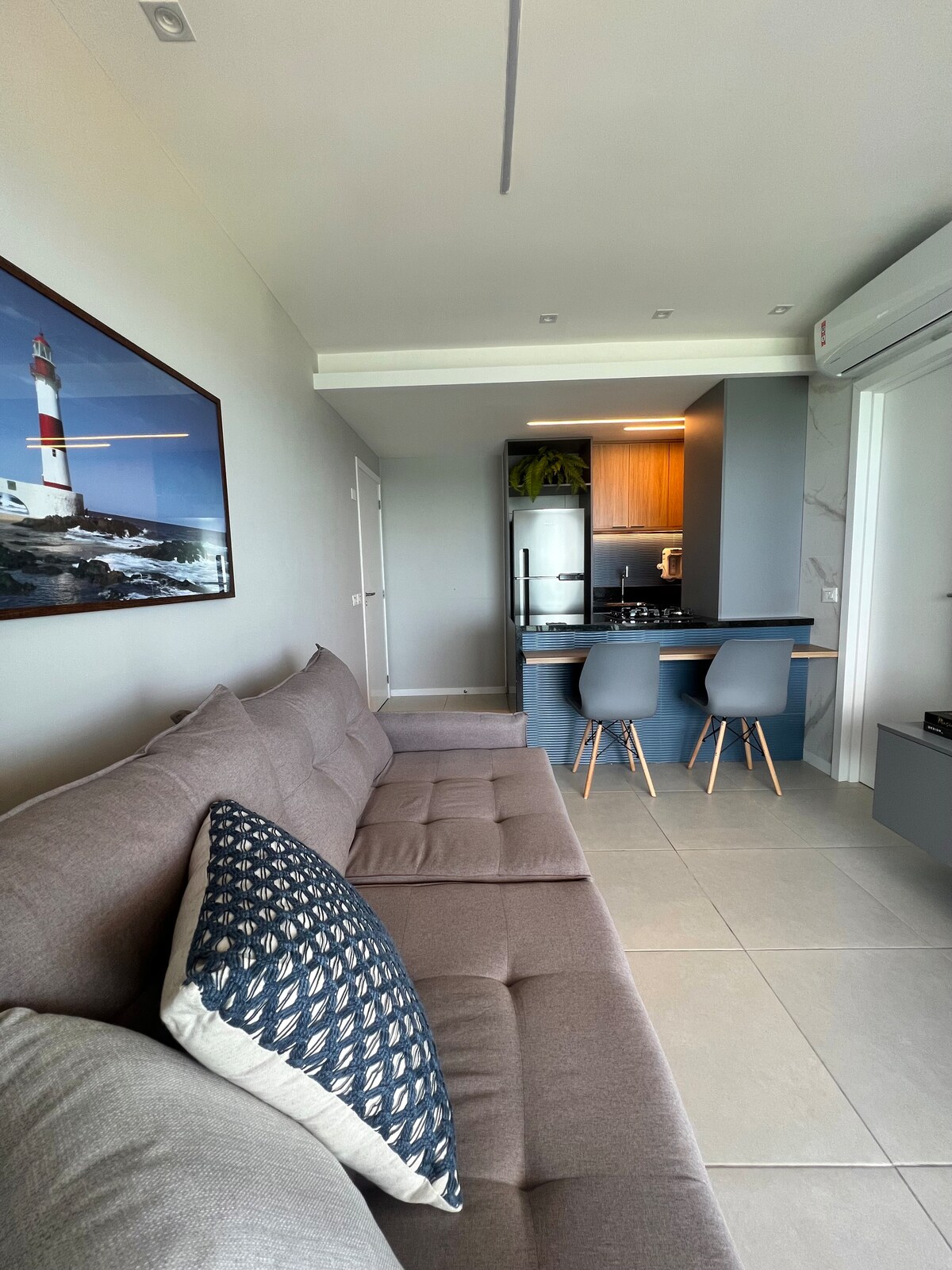 Lovely apartment with stunning ocean views, overlooking Salvador's main landmarks. From the balcony, besides the beautiful view of the All Saints Bay, you can admire the Bahia Marina, the Lacerda Elevator, the Solar do Unhão, and the São Marcelo Fort. The space is elegantly decorated, with environments equipped with everything you need, including a balcony with magnificent views. The bedroom features a comfortable queen-size bed, while the living room has a double sofa bed.