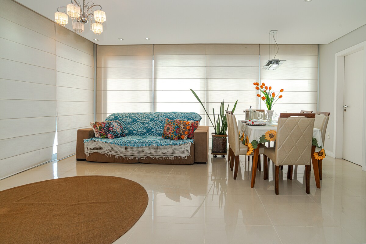 漂亮的公寓,家具齊全,位於鄉村南部泳池的最佳公寓-海洋之家度假村 1間臥室,配有1張雙人牀和1張單人牀、1間浴室、廚房、客廳2間客房、服務區、帶燒烤的陽臺。 客廳有1張超級舒適的沙發牀和充氣牀墊 有空調的房間。 WiFi、2臺電視上可收看NETFLIX的智慧電視( IPTV ) 可容納1輛車的有蓋車庫 公寓距離Cachoeira海灘100公尺。 一樓有一家超市