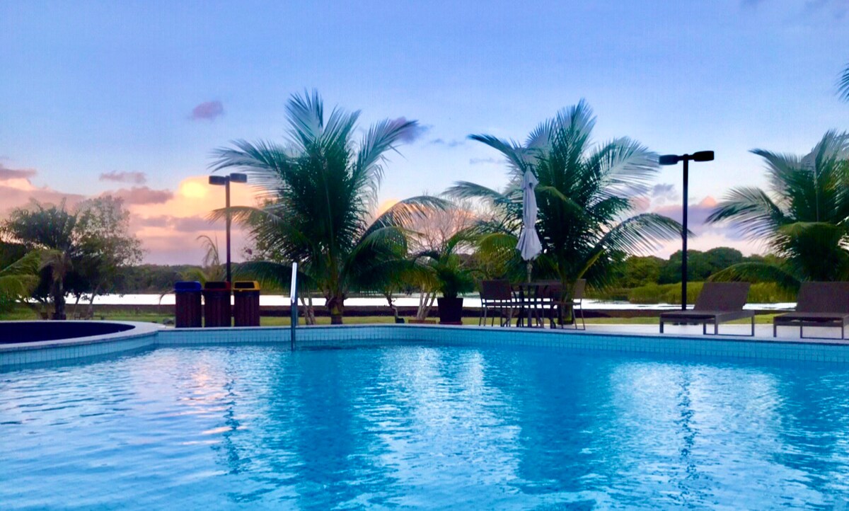 Lindo Flat: conforto, beira-lago e perto da praia