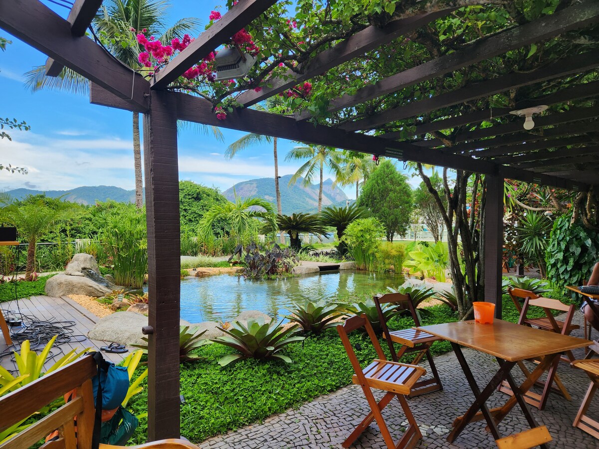 在這個安靜時尚的房源中放鬆身心,欣賞Sugarloaf和Rio Bay的美麗景色。 我們的房子坐落在聖塔特雷莎( Santa Teresa )的山丘上,就在Laranjeiras街區上方,讓您與家人或朋友一起在Carioca明信片中完全休息。 如果有人想工作,我們會為他們提供專屬的空間。 但這裡的景色也很棒。 房源每天都有管理員和家庭工人工作。