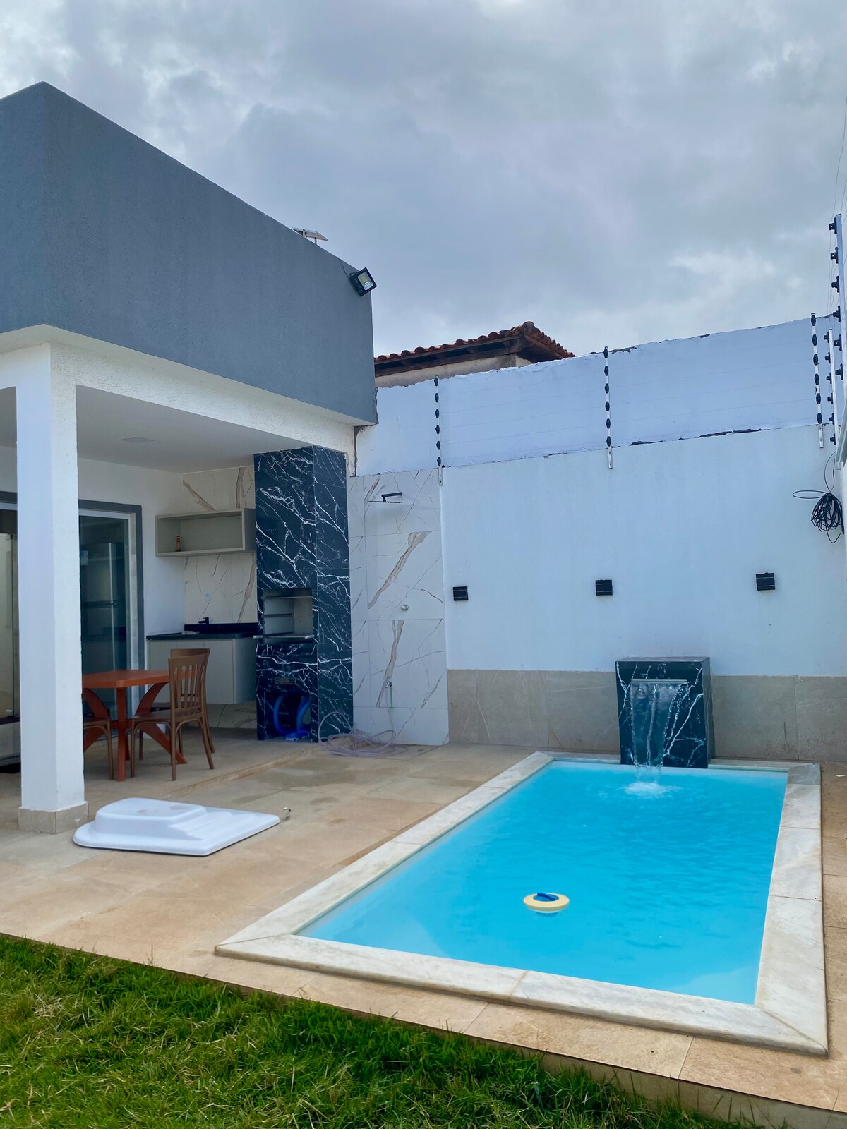 非常適合玩樂的空間,美麗的日落和Jauá沙丘的樂趣。 房子設有私人泳池、車庫和底部區域,以及配備咖啡機、微波爐、攪拌機、冰箱、爐具、鍋具、碗盤、餐具、處理器的廚房。 房間配有床、枕頭和空調,套房配有熱水淋浴間、房間配有50英寸電視、Wi-Fi 500 mb,售貨亭有冰箱、大理石檯面和美麗的燒烤設備,讓您度過美好時光。