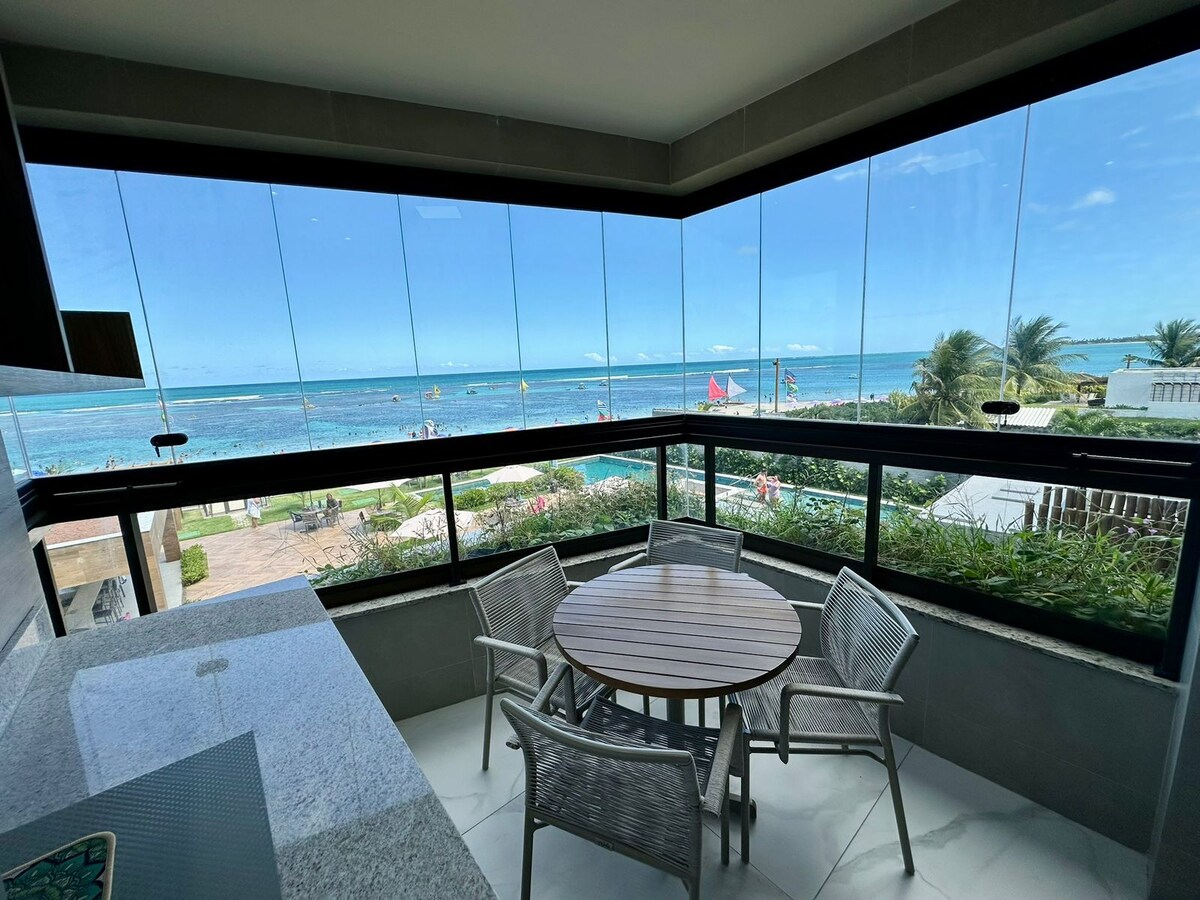 ✔️Flat no 3° Andar em frente ao mar, a 20 passos das areias da Praia e apenas 9 minutinhos caminhando até a Famosa Rua das Sombrinhas, que fica no Centrinho (Vilinha) de Porto de Galinhas. ✔️Varanda privativa com vista para o mar, ar condicionado, smart tv 55", piscina, espaço gourmet e academia além de 1 vaga de garagem. ✔️Ideal para até 3 pessoas, roupa de cama e toalhas de banho são fornecidas. ✔️Assista ao nascer do sol sem sair da cama, em dias de céu aberto e conforme a estação do ano.