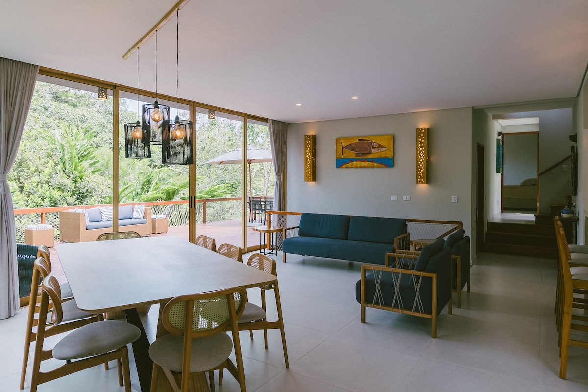 房屋位於森林中,在樹頂上,俯瞰大海,在公寓內,在費利克斯海灘右角的山丘上,在烏巴圖巴市最美麗和保存最好的部分。在這裡,您可以在大西洋森林和海浪的聲音中醒來。有3間套房、吊床、沙發、DVD電視、高速網路和燒烤設備。這是一個完美的房子,適合那些想要享受安靜和自然的人,享受世界的所有寧靜。