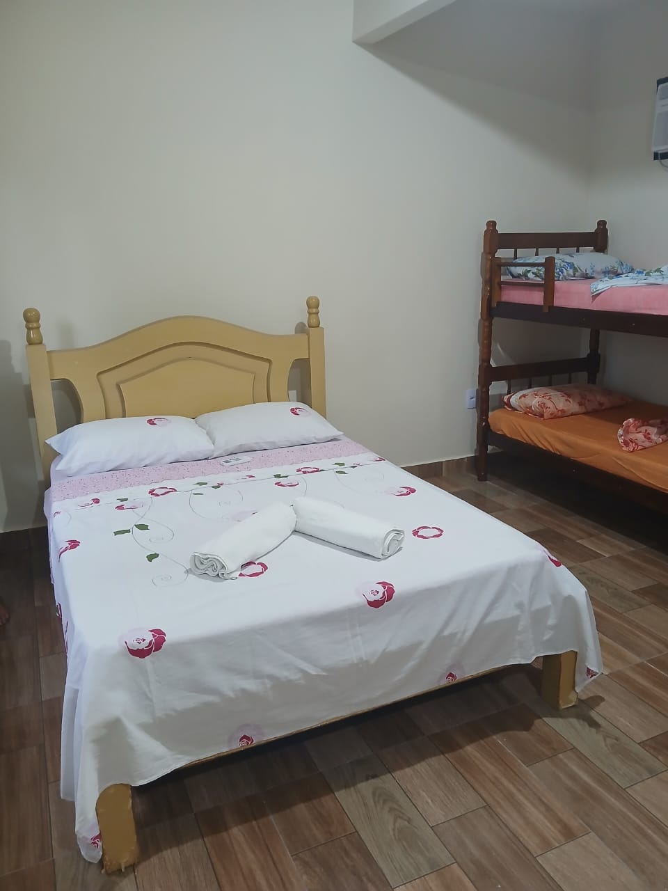 休息一下,三人套房,寬敞通風,前面有一個帶吊床的陽臺。套房內有一個迷你廚房,配有爐子、冰箱、咖啡機等...套房還有一張雙人床、單人床、空調、風扇和應急燈。套房後面還有一個水箱和一個晾衣架。 它位於Getulio vargas街的盡頭,抵達角落的海灘。 這個地方非常安靜和熟悉,淋浴間有熱水。套房是獨立的 我們只接受小型寵物