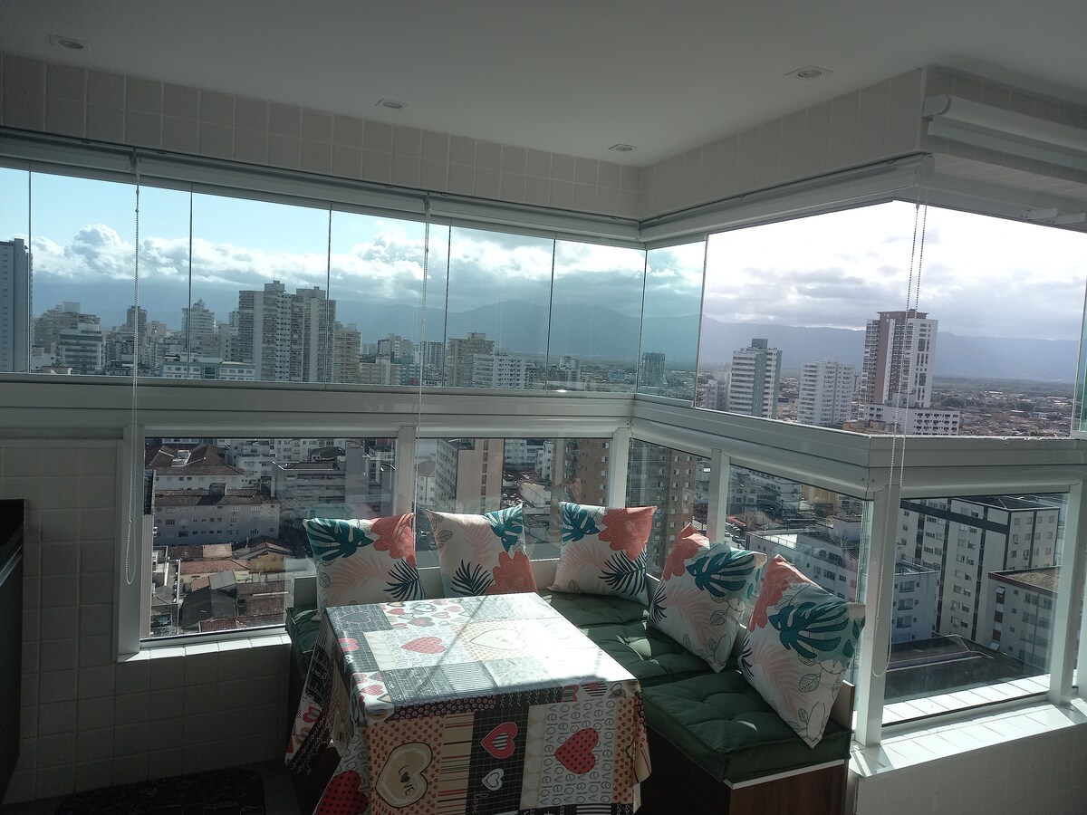 海濱公寓,可欣賞整個海灘的美景。寬敞、通風、自然光線充足。位於十 (10) 樓,全面陽台,全面篩選和家具。有兩個車庫空位和兩部電梯。輕鬆前往海灘和當地商店。 聖保羅南部海岸大海灘的吉爾赫米娜海灘。 *提供基本的床、桌子和浴室用品,以及沙灘椅和遮陽傘。