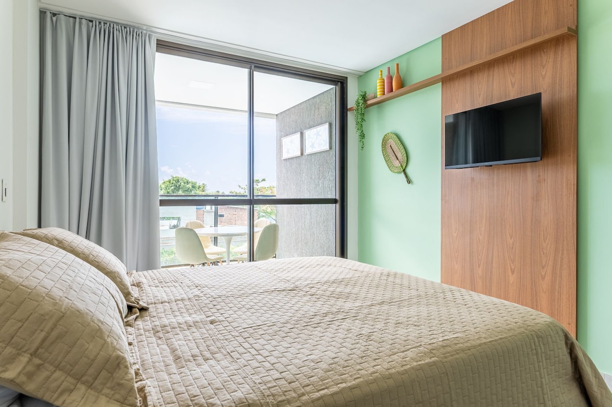 ✔️Flat no 3° Andar em frente ao mar, a 20 passos das areias da Praia e apenas 9 minutinhos caminhando até a Famosa Rua das Sombrinhas, que fica no Centrinho (Vilinha) de Porto de Galinhas. ✔️Varanda privativa com vista para o mar, ar condicionado, smart tv 55", piscina, espaço gourmet e academia além de 1 vaga de garagem. ✔️Ideal para até 3 pessoas, roupa de cama e toalhas de banho são fornecidas. ✔️Assista ao nascer do sol sem sair da cama, em dias de céu aberto e conforme a estação do ano.
