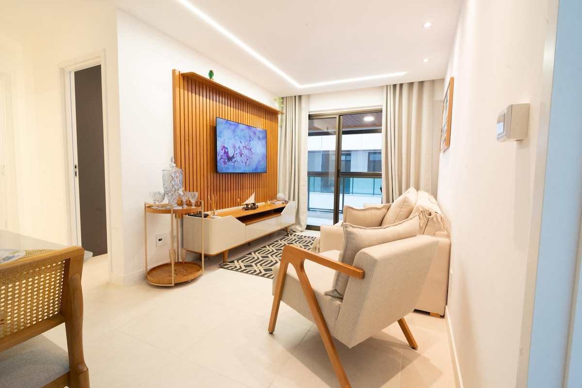 APARTAMENTO ACONCHEGANTE A 5MIM A PÉ DA PRAIA DO FORTE WI-FI,GARAGEM ELEVADOR,REDE DE PROTEÇÃO.