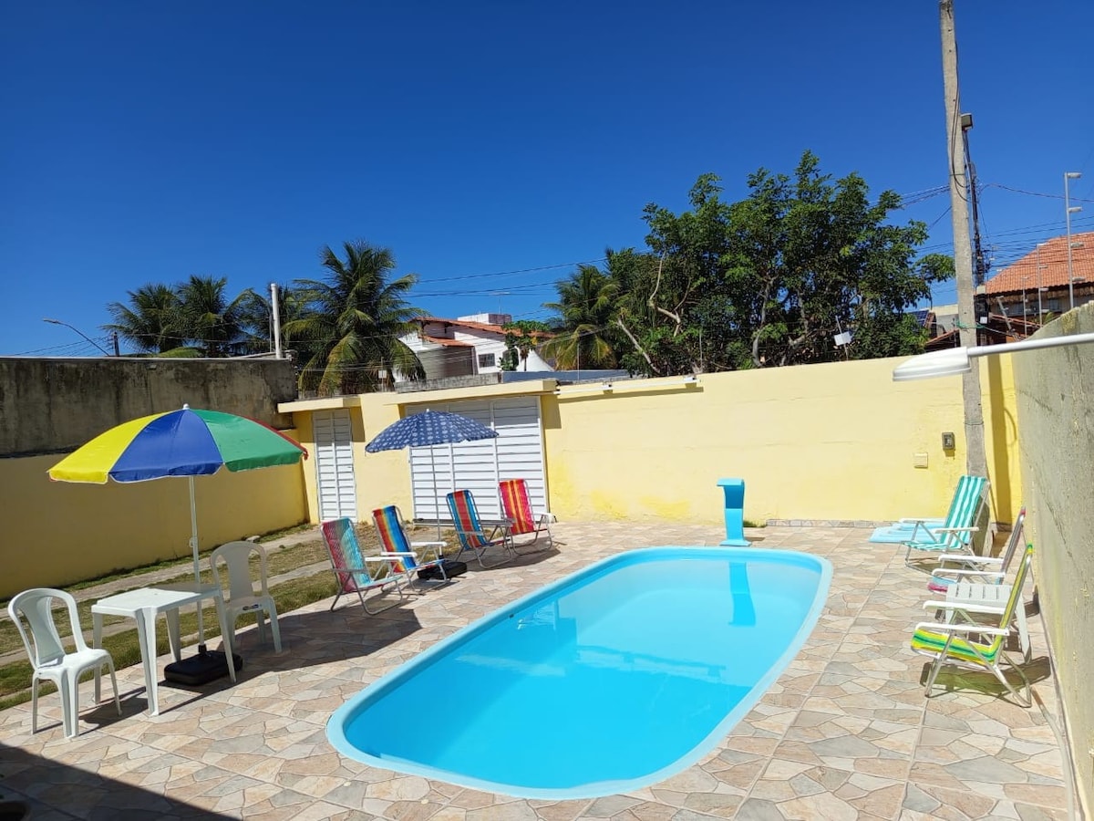 -casa para 10 pessoas. ( 11 pessoas colocando um colchao) -3 quartos com ar condicionado sendo 2 suítes. 4 banheiros -Portaria e vigilância 24h. wi-fi. -O condomínio possui área enorme de lazer quadra poliesportiva, de beach tennis,parquinho churrasqueira uma piscina enorme infantil e para adulto. -casa possui piscina e churrasqueira privativa. -melhor localização.5 min de carro para a praia do francês, 10 min para Barra de São Miguel e 15 min para a praia do Gunga. 15 min de Maceió.