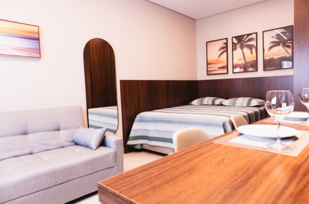 單臥室公寓( 46,30平方公尺) ,位於非常好的休閒中心,提供良好的服務和令人驚嘆的健康設施(遊泳池、水療中心、健身房等)。 地理位置優越,就在海邊。 公寓、前臺和休閒區域均提供WiFi。 毗鄰Pão de Açúcar超市,每天上午7點至晚上11點營業(裡面有咖啡廳和快餐餐廳)。