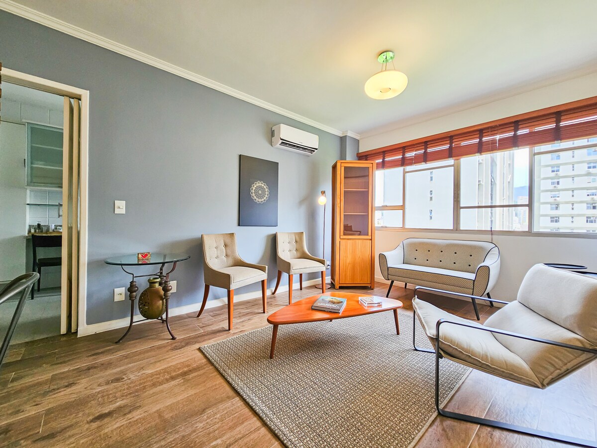 在科帕卡巴納(Copacabana)萊梅(Leme)市中心的2間臥室翻新公寓中,欣賞大海和山脈的壯麗和獨特景觀,非常適合家庭和情侶。公寓很舒適,配備所有必需品,讓您感受像家一般的舒適。非常寬敞且裝飾時尚的客廳,以及設備齊全的公寓。一間臥室有一張雙人床,第二間臥室有2張單人床,如有需要,客廳還有2張床墊/日式床墊。
