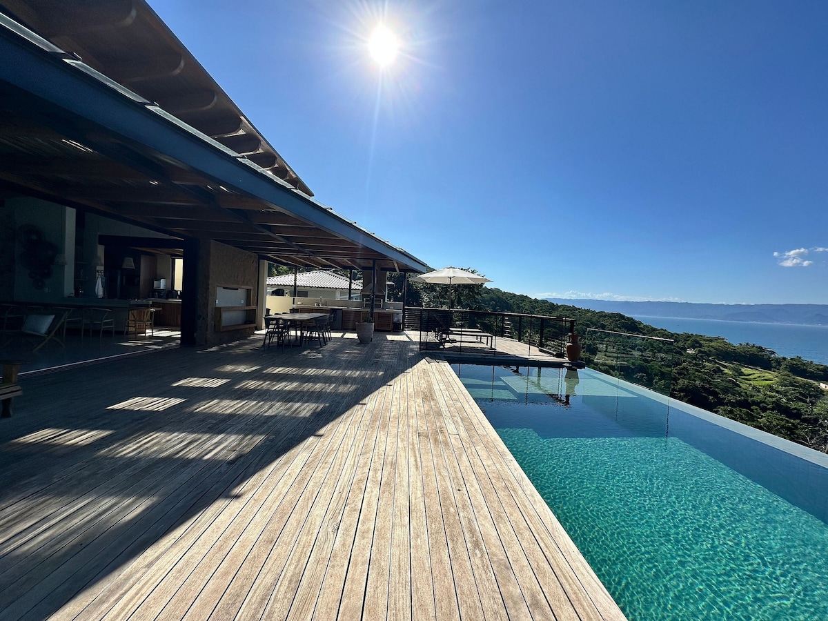 Casa em condominio fechado com segurança, recém constuída, conta com 4 suítes super espaçosas, com vista para o mar, cama king size, ar condicionado, black out. Duas das suítes acomodam 2 adultos e duas crianças. A cozinha integrada com a sala e churrasqueira, está totalmente equipada. Nossa piscina de 14m de comprimento e borda infinita, tem aquecimento solar para melhor conforto. A vista da casa é de tirar o fôlego! Praia pequena e calma, exclusiva do condomínio! @pulso_paraisoescondido