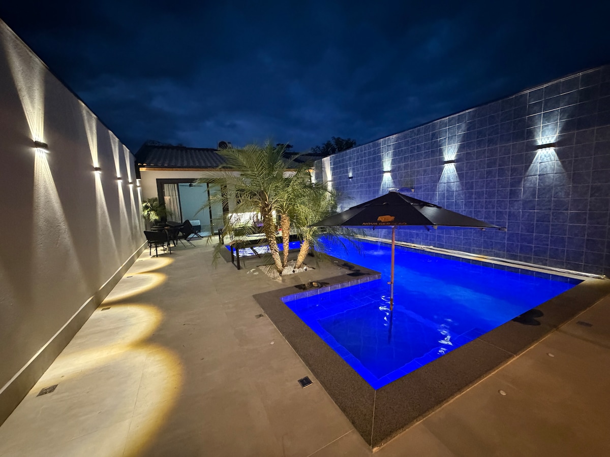 在帕拉蒂的舒適和完整的房源中體驗難忘的時刻! Casa Felicidade由2間舒適的套房組成,其中一間配有私人漩渦浴缸,為家庭或一群好友提供所有舒適和隱私。 戶外區域是休閒的邀請:享受溫水泳池和迷人的美食區域,非常適合燒烤和特別聚會。 這棟房子還有: 所有房間配備空調。