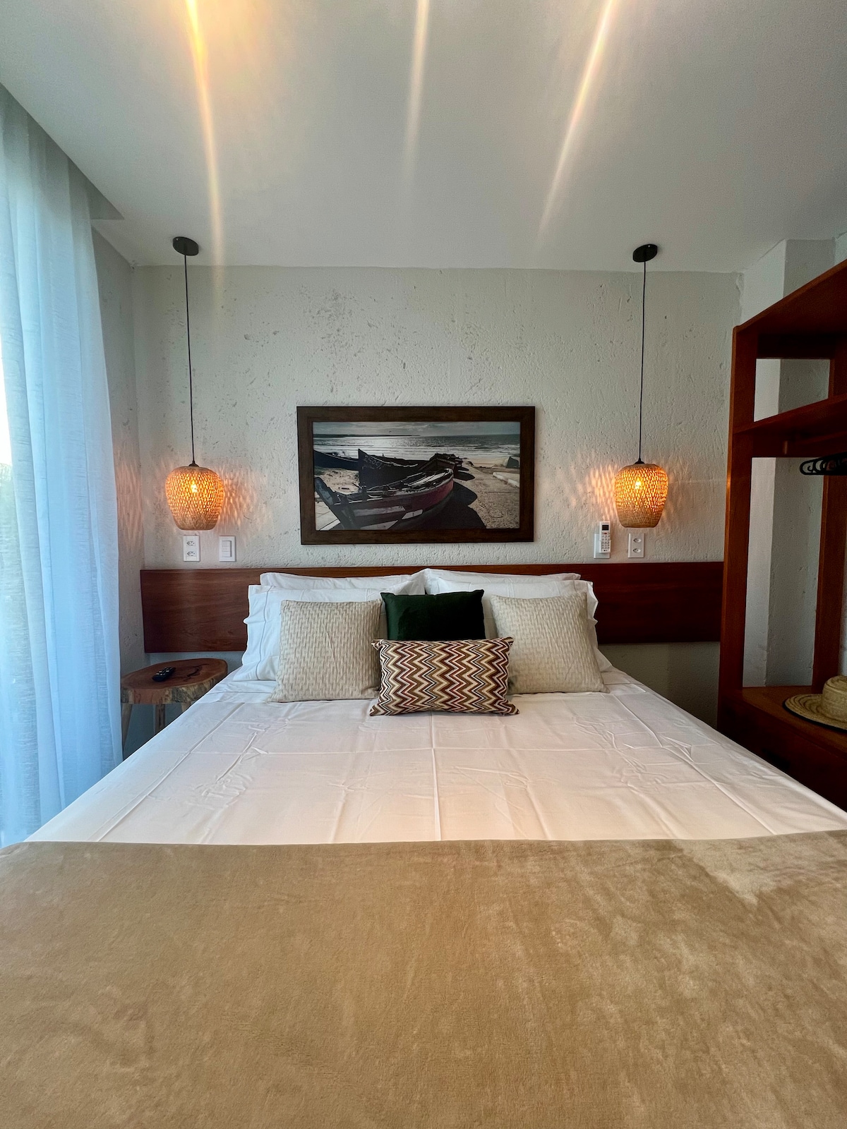 位於封閉式公寓內- AREIA的奇蹟-魅力之家。 完全的安全和寧靜。 帶私人泳池的豪華平房。 非常適合度蜜月或想要良好品味和隱私的人。 位於Praia do Toque海邊,這是São Miguel dos Milagres最好的海灘。 鄰近美味餐廳。 Jangadeiro在房子前面抓住他們,帶您步行前往該地區的天然泳池。 我們提供早餐