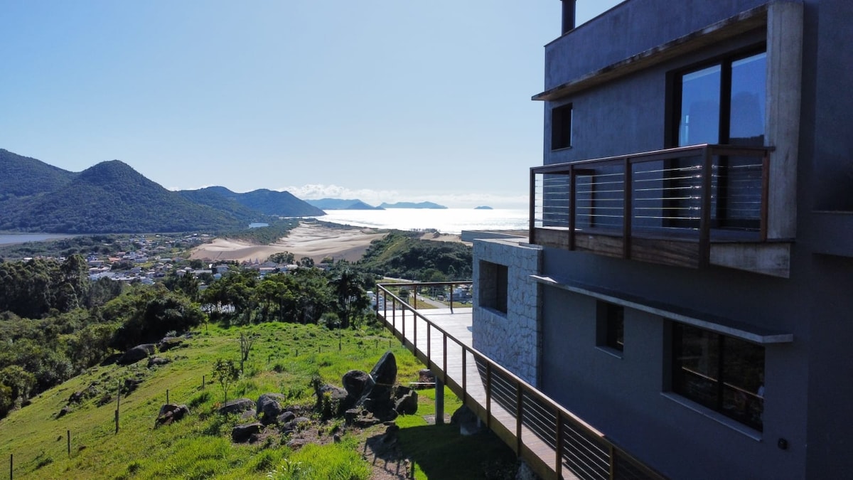 這間私人閣樓位於大西洋森林中心的「Canto dos Araças」社區,坐擁「Lagoa da Conceição」湖和大海的壯麗景色,是情侶的理想之選。地理位置舒適,靜謐私密,距離Lagoa社區中心僅2.5公里,距離Lagoa da Conceição湖僅300米,位於通往Costa da Lagoa的步道起點。這是一棟全景浪漫的房屋,是情侶的完美選擇。開車5分鐘即可抵達Lagoon中心,15-20分鐘即可抵達Mole/Joaquina/Galheta/Barra海灘。