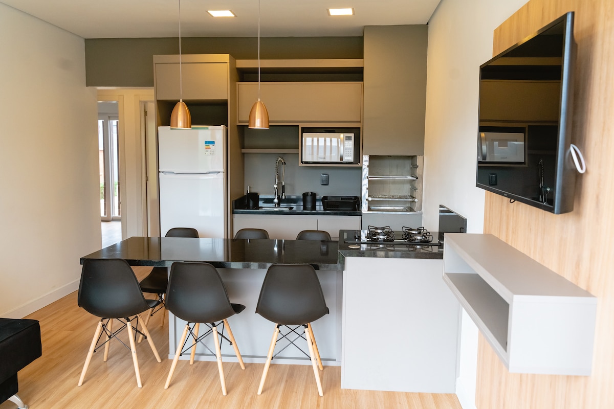 時尚的房源和令人嘆為觀止的景觀! 適合那些尋找最佳體驗、舒適、精緻、安全和寧靜的人! 三間套房+主套房,配有加大雙人牀、乙醇壁爐、迷你吧和按摩浴池。 甲板上的溫水水療、臺球桌、所有臥室和客廳都有空調、WiFi、內部和外部燒烤、酒窖、啤酒廠、洗碗機和洗衣房。 我們喜歡寵物,但我們不允許大型犬。