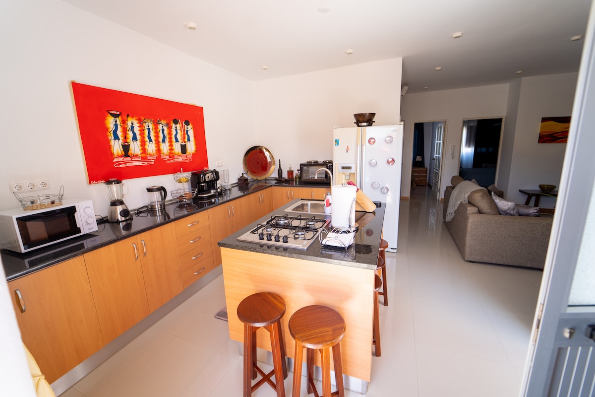 獨家公寓,位於有電梯的大樓內。地理位置優越,位於安靜的區域,但靠近景點(餐廳、海灘等),從廚房和客廳的部分區域可欣賞美麗的海景。全套空調、光纖 WiFi、智慧電視和所有設備,讓您擁有難忘的住宿體驗。有 3 張床(皇后尺寸),非常適合家庭入住。 入住這裡,體驗佛得角的 Morabeza,並帶著 sodade 回家。