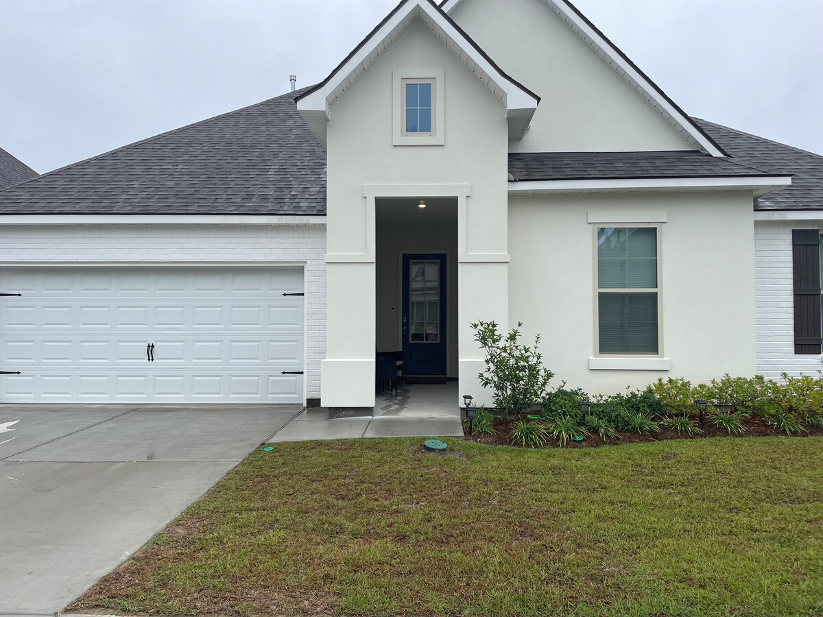 Bring the whole family to this great home with lots of room for fun! This new house in a new neighborhood is close to it all. You'll be about 10 minutes from either Baton Rouge interstate, Woman's Hospital is less than 10, LSU is less than 30 and you can get Downtown in 25. The home has everything you need to prepare meals and get cozy. Fully stocked kitchen, roomy closets and lots of extra blankets! Fast Wi-Fi and just about every streaming service. In town to work? There's a cozy office too.
