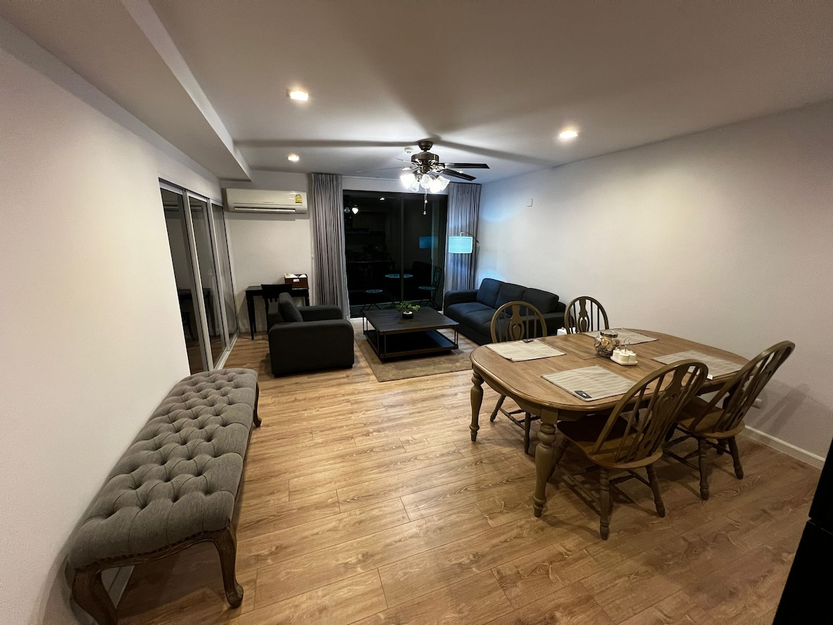 Spacious getaway directly at the beach with lush mountains in the back & the tranquil Pranburi forest park only 1 min away. Perfect for nature fans, sport lovers, remote workers or people who just want to relax The apartment has 2 bedroom, 2 bathroom incl. 1 bathtub, Sofa, TV, kitchen, working desk, balcony The building has a huge swimming pool, beachfront garden, Sauna, fitness gym & library Small local shops & restaurants in walking distance. Refill drinking water tap is under the sink.