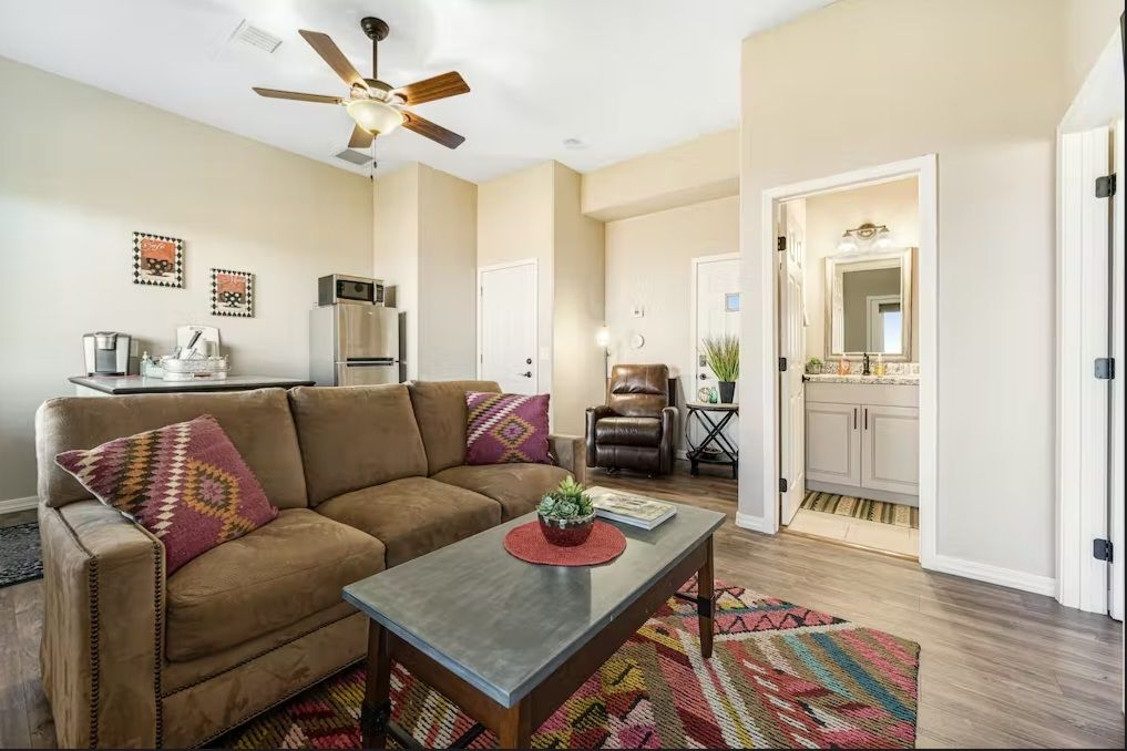 入住這間位於市中心的私人房客房源,保持簡單。 公寓是房源的樓下部分。 不要讓「樓下」欺騙你。 每扇窗戶都有令人驚嘆的景色! 套房包括一間帶大型步入式衣櫃的臥室、獨立浴室、客廳、小廚房(冰箱、微波爐、Kurig咖啡機、烤面包機、島嶼、島嶼、碗盤/餐具等)以及您自己的私人陽臺和入口。 您會覺得自己在鄉下,但距離普雷斯科特市中心僅5分鐘路程!