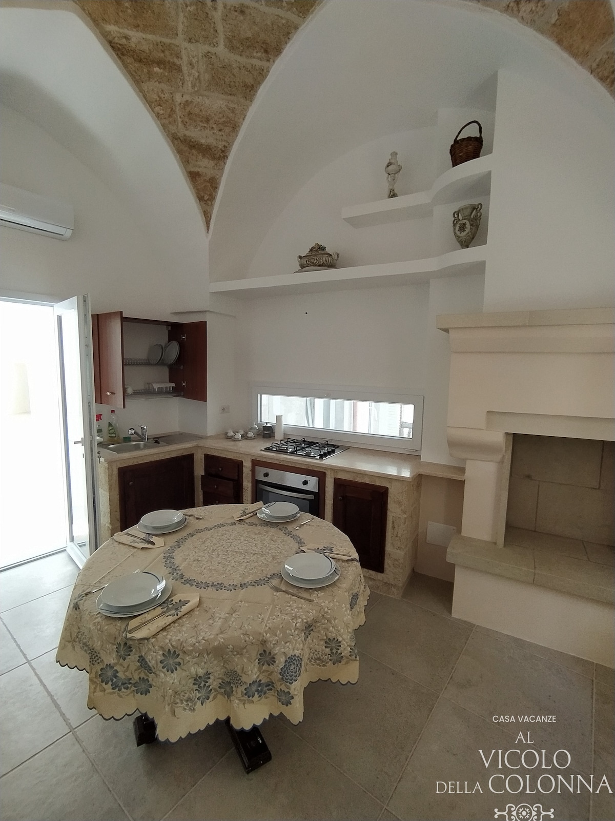 這是一個最近翻新的建築,其特點是家具裝飾讓人聯想到薩倫托的傳統,並有一個大型的地中海風格花園,可欣賞180度的愛奧尼亞海迷人景色。 花園內有植物和果樹,以及無花果、迷迭香、桃金娘、梨果仙人掌、野生茴香和許多其他物種。 這座普利亞斗笠屋是享受大自然和寧靜假期的理想選擇。