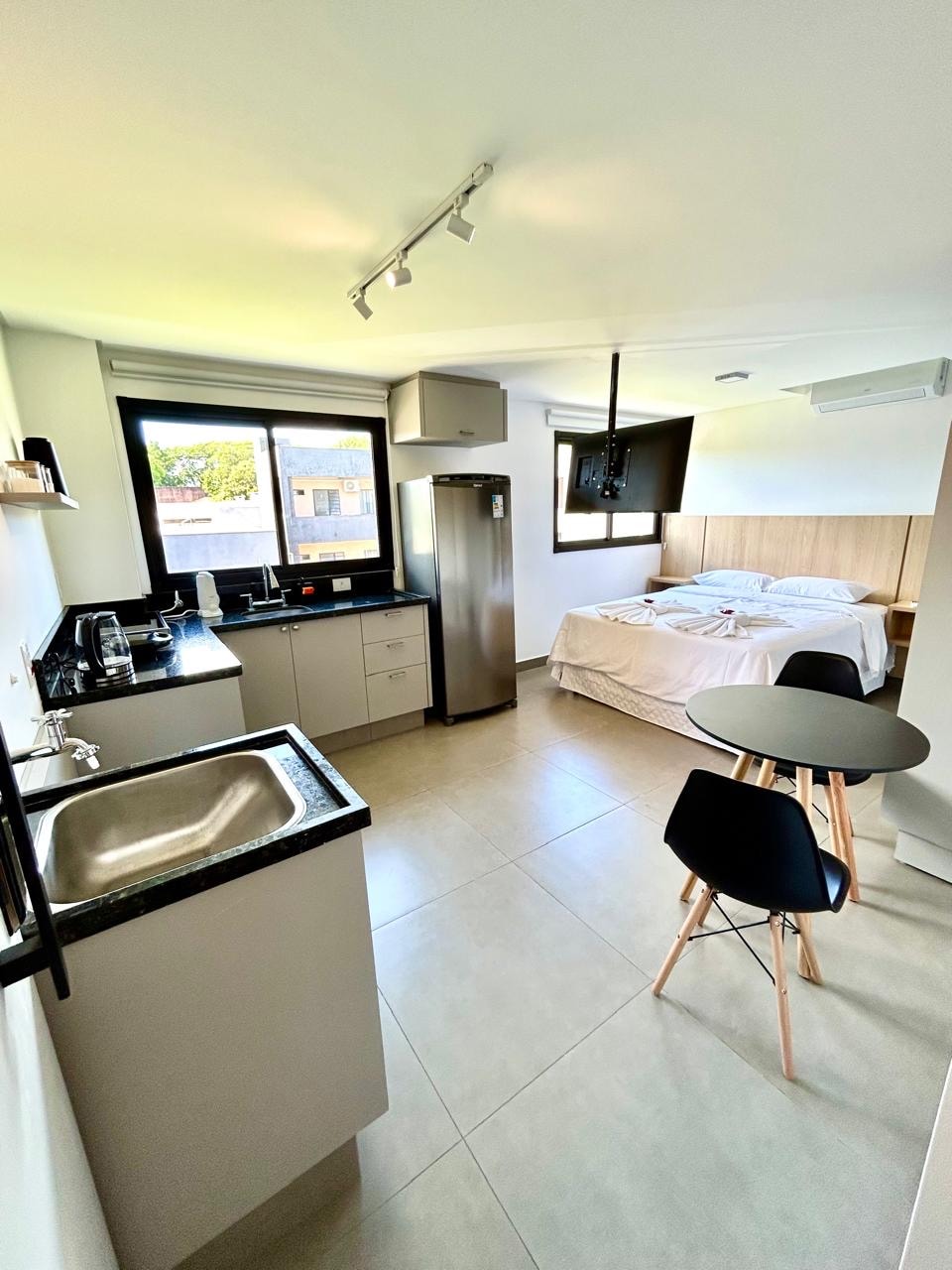 Abrace o aconchego neste lugar projetado com muito cuidado e carinho! Recém finalizado no centro de Foz, perto de tudo o que você precisa para que sua hospedagem seja perfeita. Andando você encontra supermercados, restaurantes, farmácias, posto de combustível, bancos, casa lotérica, cafés, bares noturnos, etc Espaço composto por uma suíte confortável, lavabo, sala de estar/tv/jantar, unificados com uma cozinha compacta e funcional, Na sacada você conta com uma mesa para desfrutar por do sol!