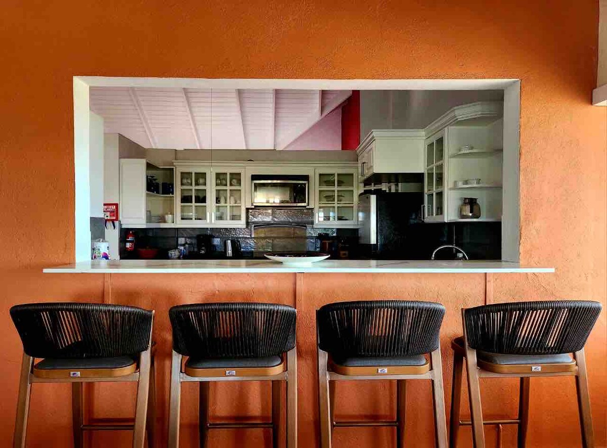 Reef View Pavilions的Turtleback Pavilion是一間私人西班牙風格的單臥室套房,配有私人閃閃發光的藍色遊泳池、令人驚嘆的屋頂亭和多個私人戶外區域,提供加勒比風格的生活。 房客可以在屋頂亭下休息,並在曬太陽甲板上休息。 主樓層包括可愛的遮蔽陽臺、臥室和客廳空間,以及開放式設計的小廚房。