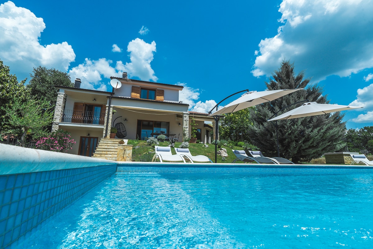 Kuća s grijanim bazenom,okucnicom,povrtnjakom i privatnim parkingom... Kuća ima 4 sobe s 3 bračna i 2 kreveta za djecu.Sve sobe su klimatizirane i opremljene smart TV. 3 kupaone i velikim dnevnim boravkom... Kuća ima centralno grijanje i klima uređaj,bezicni internet, satelitsku antenu,mašinu za robu i sudja... Vanjski kamin,vanjsku terasu...