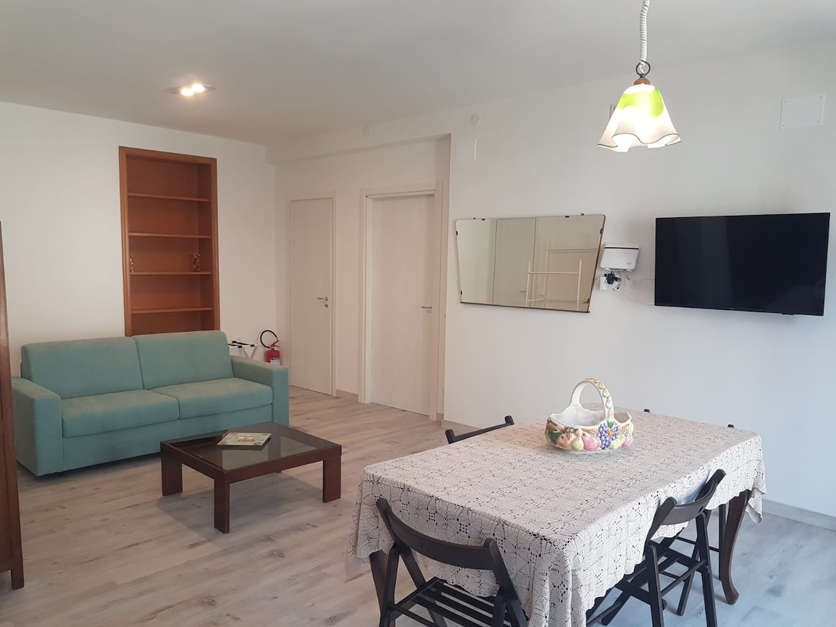 全新且著名的公寓,獨立通道,位於Termoli市中心,設有私人庭院。 -公寓包括 1 間配有庭院的寬敞房間、1 間配有淋浴間和窗戶的浴室、1 間配有各種舒適設施的廚房和 1 間配有沙發床的客廳。 -位於戰略位置,靠近火車站、主街和大海。 -現代風格的家具,提高效率。 -公寓位於市區的主要街道之一Via G. Pepe, 38。