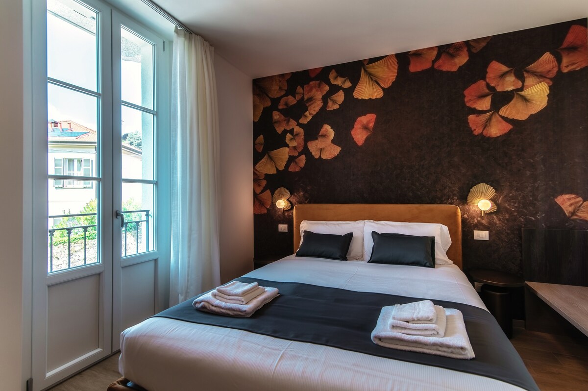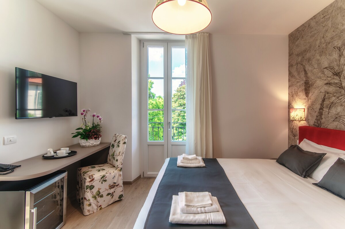 小型套房,配有私人陽臺,可欣賞科莫湖、意大利和瑞士阿爾卑斯山的壯麗景色。它有客廳區域,配有沙發床和咖啡桌,以及睡眠區域,配有法式雙人床。25 平方米的全壁畫,配有家具 包括拼花地板和20世紀初的原始門。配有淋浴間和時尚水龍頭的獨立浴室。 適合家庭或朋友入住,最多可容納3人。