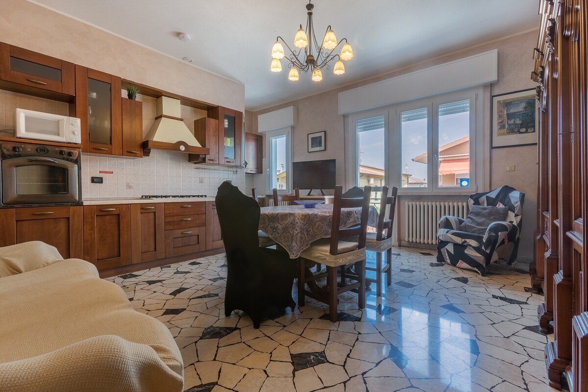 獨立房屋,面積65平方米,位於市中心,開車前往十分便利,位於費拉拉古城牆前方,距離老城區的交通限制區僅200公尺。 配有帶廚房的大客廳、雙人臥室、單人臥室、帶淋浴的浴室和獨立的小內院,還有私人停車位(最大寬度185厘米)。 非常適合情侶和家庭入住。可加床(第四張床)。允許攜帶寵物。