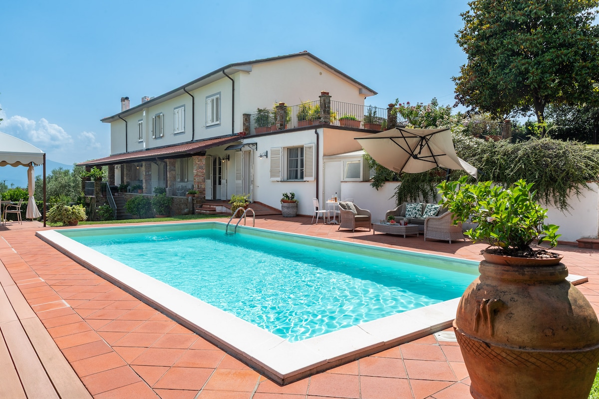 Lory別墅是您度假的理想住宿地點! 您將置身於一個非常寧靜的鄉村度假勝地,但配備了五星級現代酒店的所有設備與服務,同時您可以在幾分鐘內抵達托斯卡尼美麗地區的任何景點。 地點-盧卡區的一座山丘-將為您提供美麗的景色。 在泳池旁放鬆,在水療中心享受,打乒乓球或足球,在木烤箱烹飪披薩,或享受烤肉。 像當地人一樣生活,像遊客一樣探索!